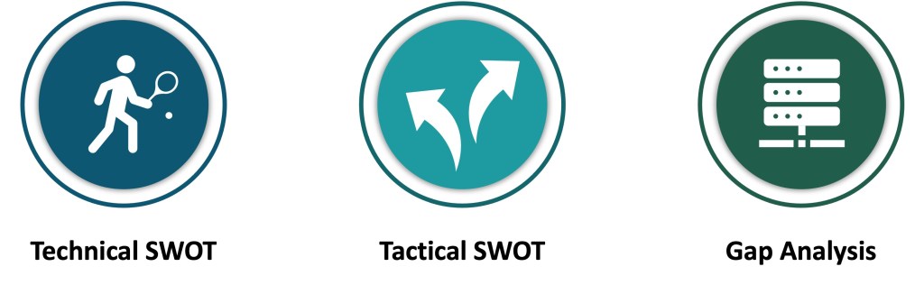 Tactical SWOT – focusing on a player’s decision-making during a match. It allows for the identification of effective shot selections and patterns of play, alongside areas where the player may have made strategic errors or could capitalize on certain opportunities.